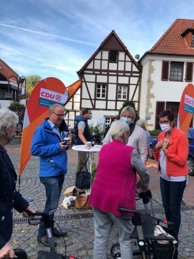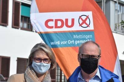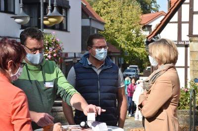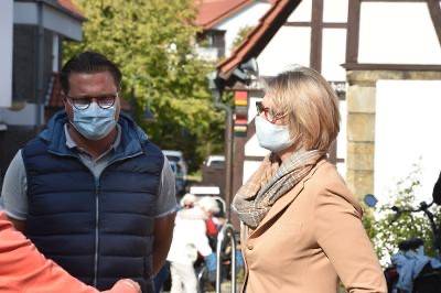 Anja Karliczek und Mathias Krümpel auf dem Wochenmarkt Mettigen 2020