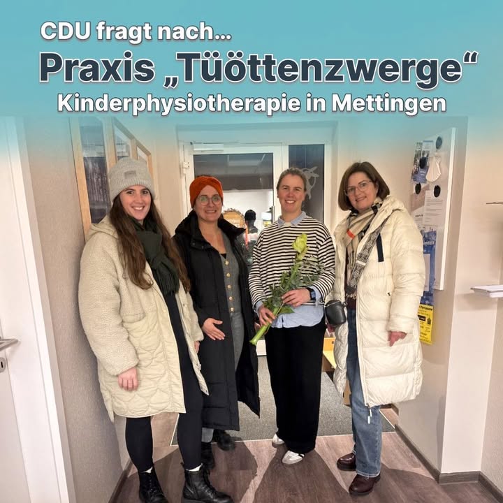 CDU fragt nach 👂Zu Besuch in der Praxis für Kinderphysiotherapie "Tüöttenzwerge" in Mettingen ?Im Rahmen unseres Formats CDU fragt nach waren wir bei den Tüöttenzwergen zu Gast. Christina Feld, seit letztem Jahr stolze Inhaberin der Praxis, gab uns spannende Einblicke in ihre tägliche Arbeit. Dabei wurde schnell deutlich, wie breit das Behandlungsspektrum ist: Der jüngste Patient ist aktuell gerade 3 Monate alt, der älteste 78 Jahre. Die Praxis behandelt also nicht nur Kinder, sondern begleitet auch Erwachsene physiotherapeutisch.Besonders bei Kindern gilt: Je früher eine notwendige Therapie beginnt, desto besser sind die Entwicklungschancen. Neben dem elterlichen Bauchgefühl spielen auch die U-Untersuchungen beim Kinderarzt eine wichtige Rolle. Sie helfen dabei, frühzeitig zu erkennen, ob sich ein Kind altersgerecht entwickelt oder ob eine physiotherapeutische Unterstützung sinnvoll sein kann.Die Inhaberin der Praxis rät Eltern, aufmerksam hinzuschauen und bei Unsicherheiten nicht zu zögern, Fragen zu stellen. Ergänzend bietet die Praxis gezielte Entwicklungsberatungen an, um frühzeitig Orientierung und Sicherheit zu geben.Ein wichtiger Erfolgsfaktor ? gerade bei den Kleinsten ? ist die enge Einbindung der Eltern. Sie lernen, notwendige Übungen spielerisch in den Alltag zu Hause zu integrieren. So wird Therapie alltagstauglich und nachhaltig wirksam.Um der großen Nachfrage gerecht zu werden, verstärkt seit Dezember 2025 Fiete Rietmann als angestellte Therapeutin das Team der Tüöttenzwerge. 💪Auch das Thema Digitalisierung spielt in der Praxis eine zentrale Rolle: Effiziente Abläufe sorgen dafür, dass möglichst viel Zeit dort bleibt, wo sie hingehört ? bei den Patientinnen und Patienten.Ein herzlicher Dank für den offenen Austausch und die wertvolle Arbeit für unsere Familien in Mettingen! 💚Mettingen ? meine Heimat ❤#CDUfragtNach #CDUMettingen #Tüöttenzwerge#Kinderphysiotherapie #Physiotherapie #Frühförderung#GesundeEntwicklung #Kindergesundheit #Gesundheitsversorgung #Prävention
