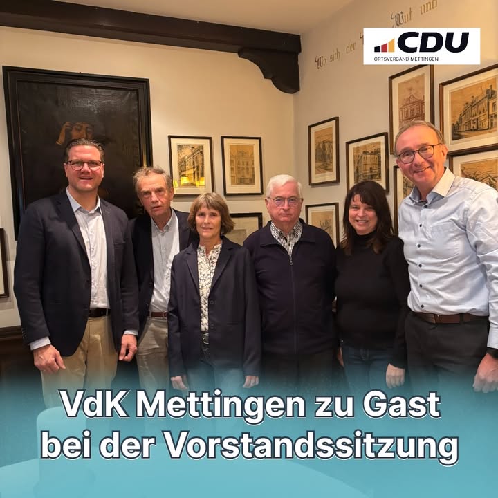 Sozialverband VdK Ortsverband Mettingen zu Gast bei der CDUAm 04.12.2025 fand unsere letzte Vorstandssitzung in diesem Jahr statt. Wie bei jeder Sitzung haben wir auch diesmal Gäste aus Mettinger Vereinen und Institutionen eingeladen, um zuzuhören, nachzufragen und besser zu verstehen, wo wir als Kommunalpolitiker unterstützen können. 🤝Zu Gast war der VdK Mettingen mit den Vorstandsmitgliedern Rita Langemeyer, Frank Boghun und Otto Lohmann. Der Sozialverband, der nach dem Zweiten Weltkrieg entstand und in Mettingen durch Bernhard Hunnekuhl gegründet wurde, zählt heute über 550 Mitglieder ? und freut sich jederzeit über neue Mitglieder, die seine wichtige Arbeit stärken möchten. 💚Der VdK bietet umfassende sozialrechtliche Beratung und Unterstützung, z. B. rund um Schwerbehinderung, Rente, Pflege, Unfallversicherung, Arbeitslosenrecht und Grundsicherung.Neben dieser wichtigen Arbeit bietet der VdK Mettingen ein abwechslungsreiches Jahresprogramm ? von Weihnachtsfeiern über Tagesfahrten bis hin zu Grillfesten. 🎄🚌🔥Kontakt zur Kreisgeschäftsstelle Steinfurt:📍 Poststraße 6b, 49477 Ibbenbüren📞 05451 99 88 00📠 05451 99 88 099✉️ kv-steinfurt@vdk.deGemeinsam für ein starkes und gut unterstütztes Mettingen.Mettingen ? meine Heimat ❤#CDUMettingen #VdK #Mettingen #Sozialverband #Ehrenamt #Kommunalpolitik #GemeinsamStark #SozialeUnterstützung #Engagement